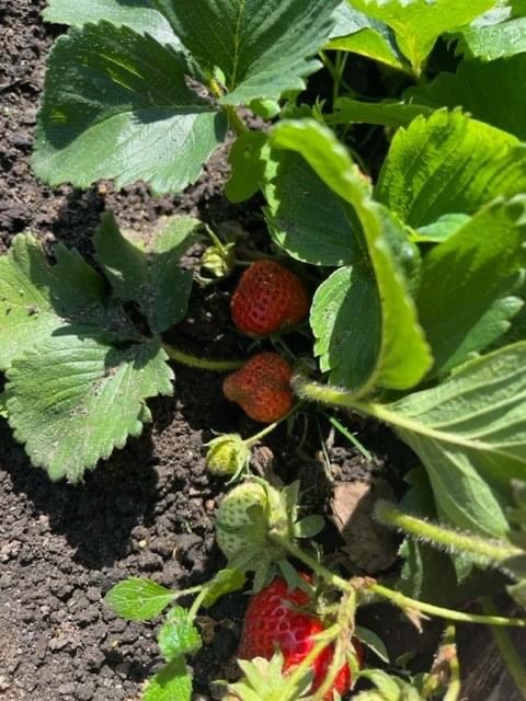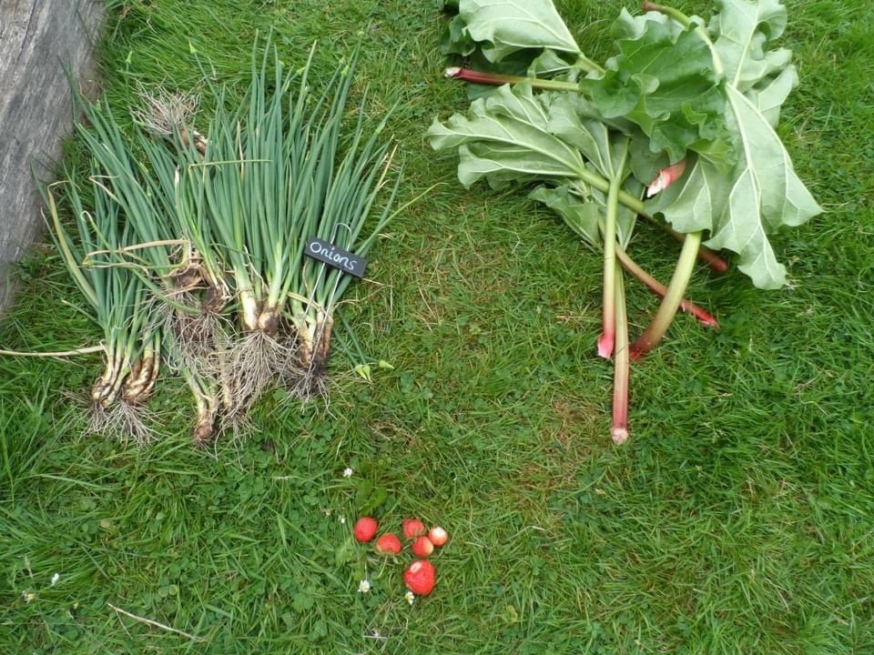 This term we've had fun harvesting our winter onions and some spring rhubarb. We also picked our first of many strawberries.
